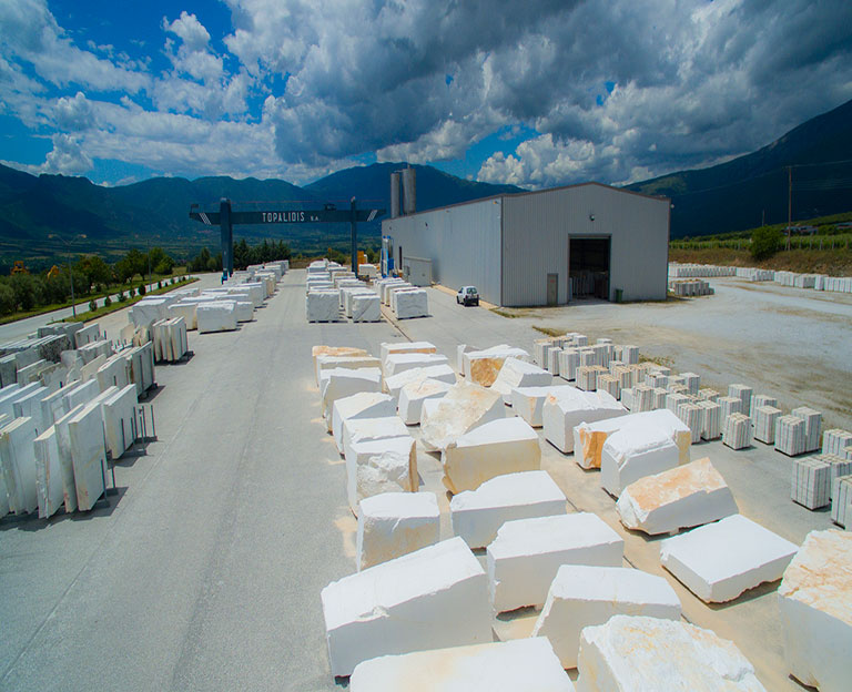 Company "Topalidis S.A. Marble & Granite" quarries, process and supplies Greek marble all over the world. It is privileged located in Drama - Greece, within the world-famous white marble quarries region of "Drama - Kavala - Thassos".